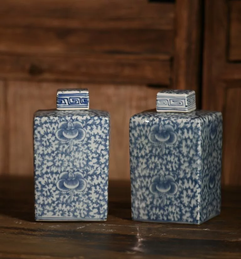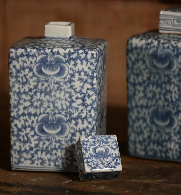 Tekannan är en vacker dekorativ urna med lock i porslin med ett detaljerat motiv. Passar fint att ställa på ett sidobord. Det vackra blåvita mönstret och de raka formen ger urnan ett gediget och tilltalande uttryck. Multifunktionell urna för blomsterarrangemang som dessutom är vacker tom.