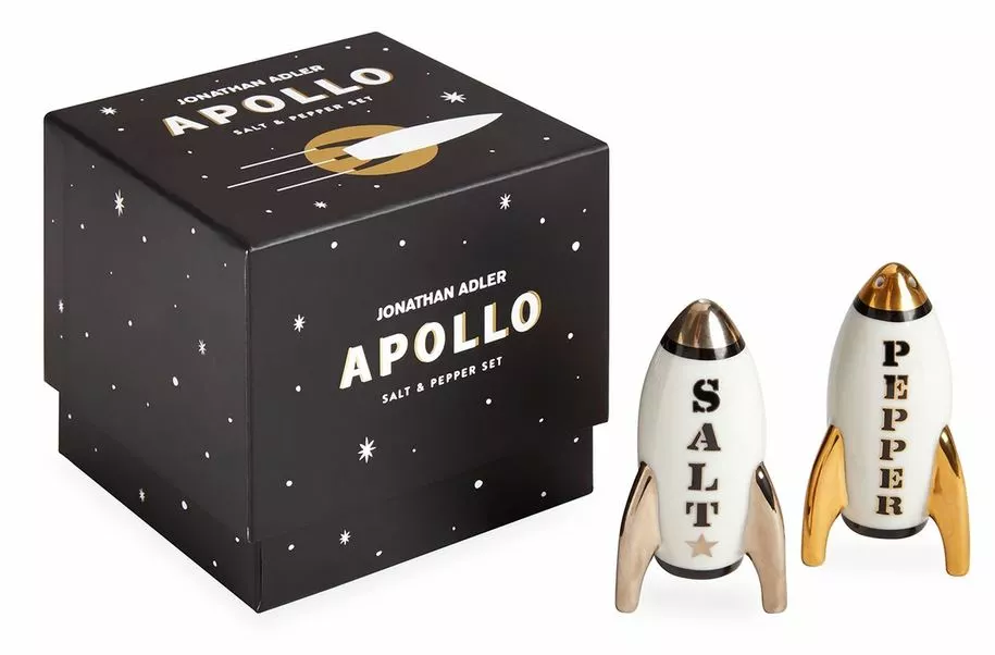 Roliga sallt och peppar kar från Jonathan Adler Apollo Salt & Pepper i porslin.