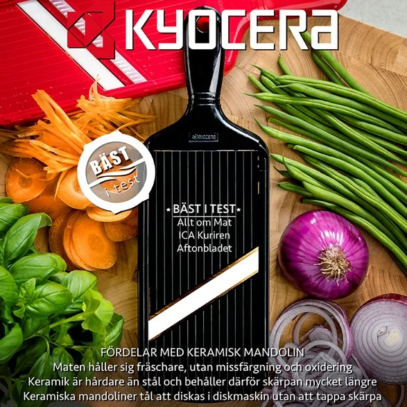 Prisbelönad mandolin som blivit bäst i test i både Icakuriren, Allt om mat och Aftonbladet. Enkel att använda – ställ bara in önskad tjocklek från 0,5 mm till 3 mm. Skivar lök och alla andra grönsaker och rotfrukter.