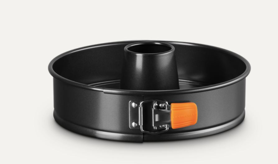 Denna runda springform har ett hål i mitten som ger dig vackert formade bakverk. Dess supersläta insida med non-stick-yta släpper lätt dina kreationer, för perfekta resultat. Och silikonhandtagen gör att det går snabbt och enkelt att öppna springformen, så att du kan börja dekorera och servera direkt!