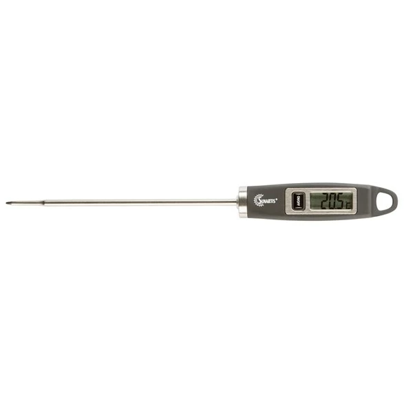 Prisvärd allroundtermometer som inom sekunder visar aktuell temperatur. Oumbärlig när du måste ha järnkoll på temperaturen för att få perfekt resultat. Funkar till vinet, steken, vällingen, degvätskan, frityroljan – you name it …
